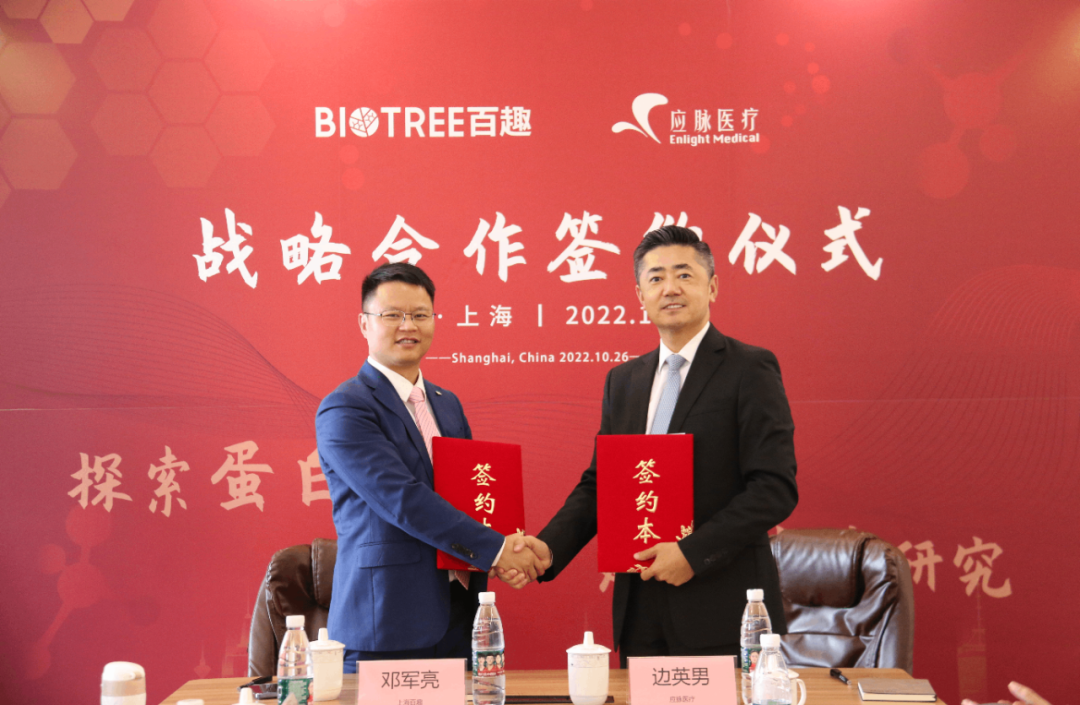 10月26日,上海百趣生物醫學科技有限公司(以下簡稱:百趣生物)與應脈醫療科技(上海)有限公司(以下簡稱:應脈醫療)在上海舉行戰略合作簽約儀式。